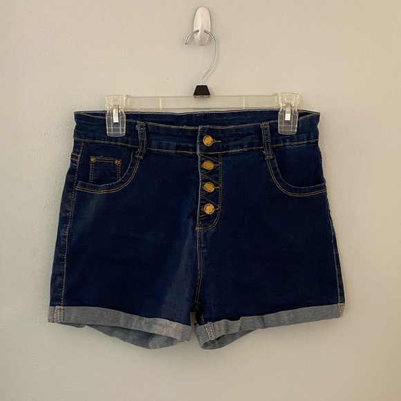 Nick Button Up Denim Shorts Medium blue high rise cuffed denim shorts. But something tells us you're down when it comes to this unique style. RISEN High Rise Button Fly Roll Up Shorts In Dark Okay, okay, maybe what we're about to drop on you isn't all that wild, but it definitely requires a little extra buttoning up